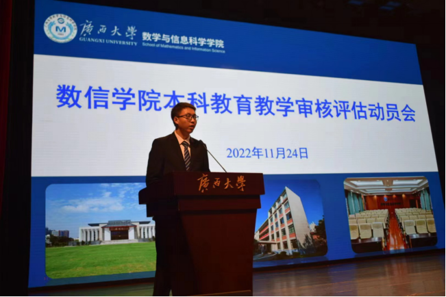 在大礼堂召开迎接本科教育教学审核评估动员会,院长郭真华做动员讲话,院党委副书记郭海燕主持会议,数信创培191班朱光洁作为学生代表宣读倡议书。全体辅导员,全体本科生参加会议。